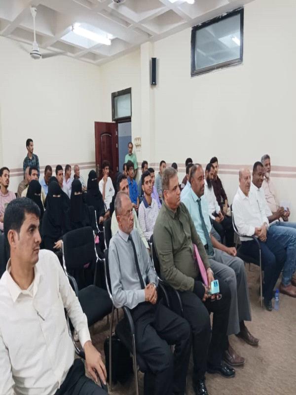 أ.د. الخضر ناصر لصور، وإشرافٍ مباشرٍ مِنْ عميدِ الكلية أ.مشارك د. محمد صالح محسن، وبحضورِ نائبِ رئيس الجامعةِ لشؤونِ الدراساتِ العليا والبحثِ العلمي أ.د.محمد عبدالله عقلان، ونواب العميد، وعدد كبير مِنْ أعضاءِ هيئةِ التدريسِ، والطلبة.