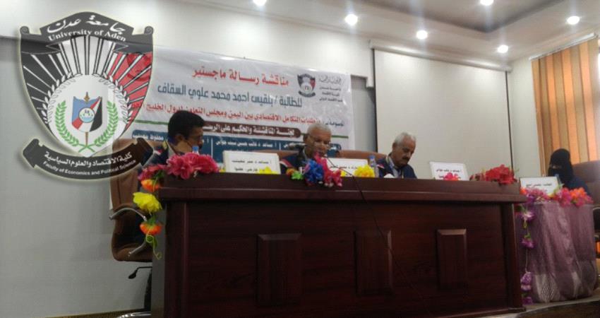 الدكتوراه للباحثة منى محمد إبراهيم من كلية الاقتصاد والعلوم السياسية بجامعة عدن