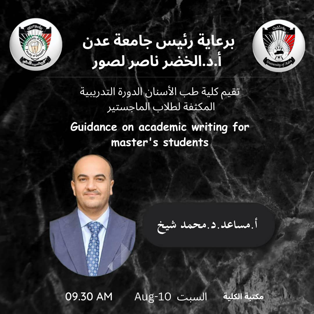 أول دورة مخصصة لطلاب الماجستير جامعة عدن في طب الأسنان حول كيفية عمل البحوث والرسائل العلمية بطرق علمية حديثة...