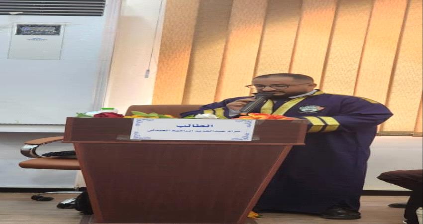 جامعة عدن ممثلة بكلية الاقتصاد والعلوم السياسية تمنح الباحث " مراد عبد العزيز إبراهيم العبدلي " درجة الماجستير الأكاديمية بامتياز.