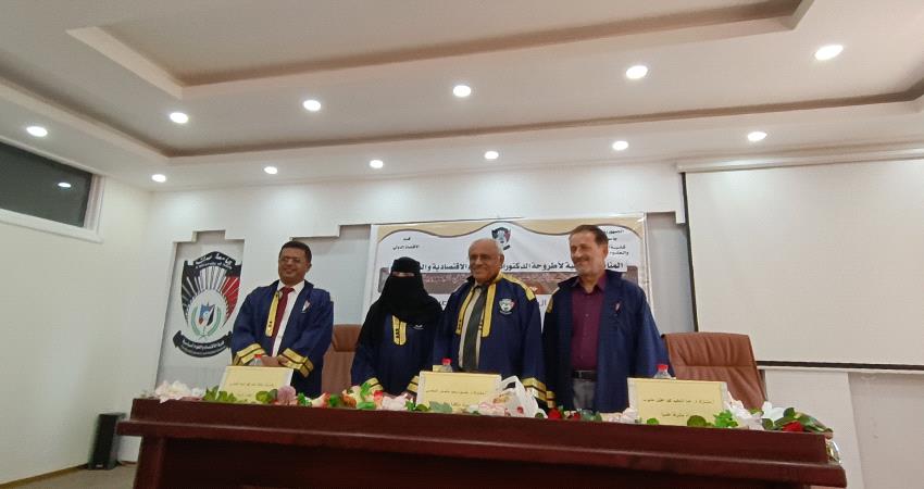 تمنح جامعة عدن ممثلة بكلية الاقتصاد والعلوم السياسية الباحثة " تفيدة عباد ناصر سلومي " درجة الدكتورة بتقدير ممتاز"