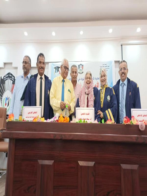 وقد تكونت لجنة المناقشة من الأساتذة: أ.د. سعاد عثمان عبد الرحيم يافعي مشرفا علميا ورئيسا. أ.د. ابتهاج سعيد الخيبة مناقشا داخليا. أ. مشارك. د. محمد أحمد عمر بأعمر مناقشا خارجيا (جامعة حضرموت)، وقد منحت لجنة المناقشة والحكم درجة الدكتورة بتقدير ممتاز.