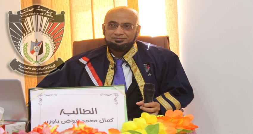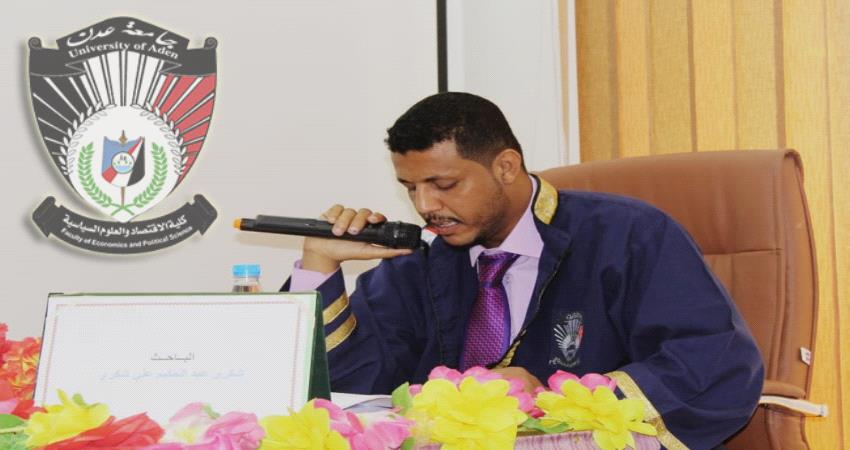 كلية الاقتصاد والعلوم السياسية -جامعة عدن - تمنح الباحث " هيثم جواس " درجة الدكتوراه الأكاديمية بامتياز مع مرتبة الشرف الأولى.