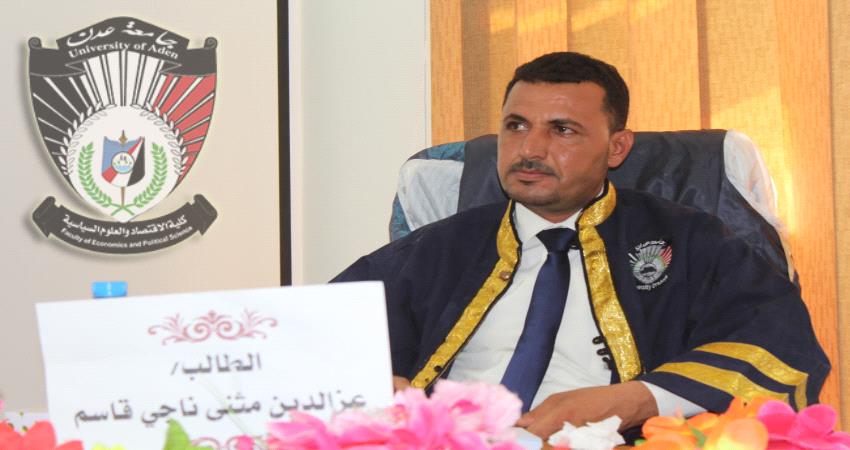 الدكتوراه للباحثة منى محمد إبراهيم من كلية الاقتصاد والعلوم السياسية بجامعة عدن