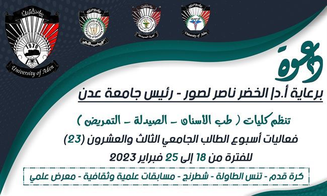 بحضور وزير الدولة محافظ محافظة عدن أ/ أحمد حامد لملس وبرعاية رئيس جامعة عدن أ.د/ الخضر ناصر لصور وبإشراف عميد كلية طب الأسنان د/ ماجد علي علي نظمت كلية طب الأسنان حفل إستقبال للطلاب المستجدين للعام ال...